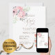 Moderna invitación de boda bilingüe en español e inglés con hermosos gráficos florales y campos de plantilla de texto en ambos lados para agregar todos sus detalles, Incluida la ceremonia de boda, Rezepción, UAWG, registro de regalos y más. Edite el código de escaneo qr con la URL de su propio sitio web de bodas o elimínelo si no es notwendigario. Moderne zweisprachige Hochzeitseinladung Spanisch und Englisch mit schönen Blumengrafiken und Textvorlagenfeldern beiderseits für alle Ihre Details inklusive Hochzeitsfeier, Empfang, uAwg, Geschenkregister und mehr. Bearbeiten Sie den QR-Scan-Code mit Ihrer eigenen Hochzeitswebsite url oder entfernen Sie ihn, falls er nicht benötigt wird.