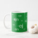 Esperanto Wortendings, Kaffee-Tasse. Die Farben der Esperanto-Fahne werden präsentiert.