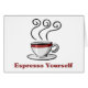 Eine Dampf-Tasse Kaffee mit Espresso Sie selbst darunter. Sie genießen Kaffee, warum nicht die Welt kennen lass.