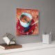 Espresso Cup und Spoon Word Cloud Quadratische Wanduhr