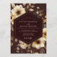 Experience a dramatic and romantic atmosphere with this moody floral design. It features luminous ivory and gold anemones and delicate roses, artistically rendered against a deep espresso brown background. The chiaroscuro effect creates a timeless, baroque elegance perfect for a sophisticated union.