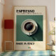 Mit diesem atemberaubenden Espressokaffeemarktprint bringen Sie die kühne Eleganz der italienischen Kaffeekultur in Ihren Raum. Dieses Kunstwerk vereint minimalistisches Design mit Vintagem Café-Charme und zeigt ein Foto von einem dampfenden Espresso in einer Tasse mit weißer Keramik, Set vor einem reichen aquamarinen Hintergrund. Die kühne Typografie oben lautet "ESPRESSO - Ein Kaffeegetränk aus fein gemahlenen Kaffeebohnen", während in der Untertitel stolz erklärt wird: "MADE IN ITALIEN". Ob Sie eine stilvolle Küchengalerie-Wand kuratieren, Ihrer Kaffeestation Persönlichkeit verleihen oder nach einem sinnvollen Geschenk für einen Kaffeefans suchen, dieser Ausdruck spricht für das Herz von handwerklichen Espressoliebhabern. Die gepflegte Gestaltung und die moderne Ästhetik machen es zu einer vielseitigen Einrichtung für skandinavisches, italienisches oder industriell inspiriert Zuhause. Ideal für: ・ Café-Wände und Café-Innenräume ・ Hauswärme oder Geburtstagsgeschenke für Espressoliebhaber ・ Fachleute aus der Baristas- und Kaffeebranche ・ Küche, Speisen oder Frühstücksnook-Dekoration Feiern Sie mit diesem visuell auffälligen Stück das Ritual, das Aroma und die Romantik des echten Espresso. Es ist mehr als nur ein Druck - es ist eine Hommage an die einfachen Freuden einer perfekten Tasse. Fügen Sie dies noch heute in Ihren Warenkorb - perfekt um sich selbst oder jemanden zu behandeln, der etwas Besonderes ist! Für diejenigen, die die Instant-Download-Version kaufen, schreiben Sie mir bitte, wenn Sie zusätzliche Größen möchten, um Ihre Bedürfnisse besser Anzug.