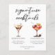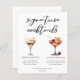 Dieses elegante Cocktails-Menü bietet eine schlichte schwarze Typografie über 2 Ihrer Lieblingsgetränke und deren Zutaten für Ihre Hochzeitsfeier an der Küste. Ein schicker Espresso Martini und Cherry French 75 zeichnend ergänzen Ihr Bar-Menü mit einem Flair. Füllen Sie bitte die Namen des Paares und das Datum für seinen Empfang aus.