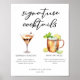 Diese schicke Cocktails-Liste bietet einfache schwarze Typografie über 2 Drinks und deren Zutaten für Ihre Hochzeitsreise-Bar. Ein Espressomartini und ein Moskauer Maultier zeichnend fügen Ihrem Bar Menuposter einen coolen Flair hinzu. Füllen Sie bitte die Namen des Paares und das Datum für seinen Empfang aus.