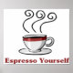 Eine Dampf-Tasse Kaffee mit Espresso Sie selbst darunter. Sie genießen Kaffee, warum nicht die Welt kennen lass.