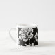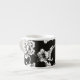 Diese charmante Espresso-Tasse wird mit einem hübschen Schwarz-Weiß-Blumendesign gezeigt. Passen Sie dieses Objekt an oder kaufen Sie, wie es ist. Börsenbild freepik.com