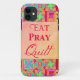 Die Worte "Eat Pray Quilt" sagen alles für ein Quilter und dieses Handy Gehäuse ist eine gute Art, es zu sagen. Diese Wörter sind in roter Schrift mit 3 verschiedenen Schriftart und zentriert sich zwischen zwei bunten Quilt Block Kunstrahmen auf einem gelben und korallenstrukturierten Hintergrund. Die Grenze umfasst beliebte Blöcke wie die Blockhütte, den Stern, das Quadrat in einem Quadrat und andere, sowie einen applique Blume Block. Die Farben Rot, Rosa, Gelb, Orange, Türkis, Blau, Korallen und Grün. Diese originale Kunst wurde von dem Stoffdesigner Phyllis Dobbs entworfen und koordiniert sie mit anderen Produkten in diesem Laden. Vollständig anpassbar