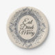 Chic Weihnachtspapier Party Teller mit einem viktorianischen silbernen Foto-Rahmen mit einem Kranz aus silbergrauen Blätter auf einem Elfenbeinhintergrund und der Text "Esst Drink and be Merry" in der modernen Typografie. In unserem Shop stehen passende Produkte wie Einladungen, Aufkleber und Party zur Verfügung. Wenn Sie Hilfe benötigen, kontaktieren Sie uns bitte über unseren Shop.
