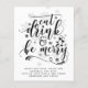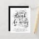 Attraktive, moderne Weihnachts- oder andere Weihnachtskarte mit Typografie mit dem Text 'Drink essen und Merry sein'. Textvorlagenfelder auf beiden Seiten stellen sicher, dass Sie Ihren jährlichen Aufholbrief für Ihre Freunde und Familie schreiben können. Umschläge nicht enthalten.