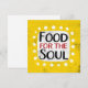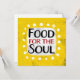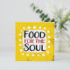 "Food For The Soul" ist ein niedliches inspirierendes oder motivierend Zitat mit weißer Akzent-Form, umgeben von weißen, texturierten, whimsikalen Punkten.
