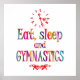 Wenn Gymnastik ein wichtiger Teil Ihres Lebens ist, wissen Sie, dass Sie ständig darüber nachdenken. Zeigen Sie anderen, wie viel Sie es mit diesem bunten Design mit einer Uhr und den Worten Essen, Schlafen und Gymnastik Liebe. Gutes Geschenk für einen Gymnast.