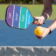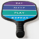 "Essen, schlafen, spielen, wiederholen" Pickleball Paddle in den coolen Farben lila, blau und grün.