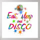 Teilen Sie Ihre Liebe für Disco mit diesem farbenfrohen Design mit Sternen, einer Diskothek und den Worten "Eat, Sleep and Disco".