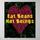Herz aus roten Bohnen bildet den Hintergrund für die Worte "Eat Beans Not Beings", um die Botschaft zu verbreiten, dass Lebewesen keine Nahrung sind und wir stattdessen unsere Gemüse essen sollten.