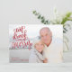 Personalisierte Weihnachtsfotokarte mit handgeschriebener Typografie. Das Design verfügt über ein Texteüberlagerungsstück, das in roter Kalligrafie mit dem Aufdruck "Drink essen und Merry sein" handschriftlich überschrieben wird. Die Vorlage ist für Sie bereit, um Ihr eigenes Foto hinzuzufügen - nehmen Sie eines, das auf der verlassen Seite nicht zu beschäftigt ist. Sie können auch Ihre Nachricht, den Namen und das Jahr oder was auch immer Sie möchten, zum Ende hinzufügen. Auf der Rückseite hat die Karte einen goldenen Schneeflocken auf einem passenden roten Hintergrund. Bitte stöbern Sie in unserem Shop für alternative Formate und Designs.