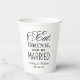 Hochzeitspapier-Party-Becher sind mit einem eleganten "Eat, Drink, and Be Verheiratet" gemischter Typografie-Zitat-Design in Schwarz mit weißer Hintergrundfarbe versehen - Notiz, Farben können angepasst werden. Personalisieren Sie mit den Braut- und Bräutigamen und ihrem Hochzeitstag.