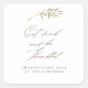 Essen Drink & Be Thankful Erntedank Leftovers Square Stickers in braunen modernen Drehbuch-Schriftart mit einem Aquarell Kräuterzweig verziert. Personalisieren Sie diese, indem Sie Ihren Familiennamen hinzufügen.