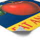 Iss einen Apple Slogan mit Vintager Apfeldarstellung in kräftigen Retro-Primärfarben Rot, Blau, Gelb und Grün. Eine großartige Erinnerung, gesund zu essen, und ein lustiges kitschiges Vintages Apfelbild.
