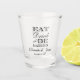 Ein elegantes Schussglas mit einer traditionellen netten Mitteilung von Eat Getränk und ist verheiratet. Fügen Sie leicht die Namen der Braut und des Bräutigams hinzu, um ein niedliches Hochzeitsgeschenk oder zu bevorzugen oder ein Jahrestagsgeschenk zu machen.
