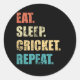 Essen Sie Schlaf Cricket wiederholen. Runder Aufkleber