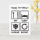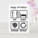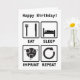 Humorvollen aufprägengrüße/die Geburtstagskartenaufmachung essen, schlafen, prägen auf, wiederholen Grafik im Monochrom.