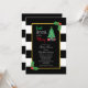 Iss, trinke und sei fröhliche Weihnachtsdusche Einladung mit einem Weihnachtsbaum und Geschenke gegen einen goldenen Rahmen. Schwarz-Weiß-Streifenhintergrund mit holprigem Hintergrund