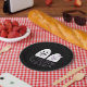 Diese blassfarbenen lila und schwarzen Halloween-Hochzeitsfeiern, Brautpaare oder Paare Duschpapiere Teller sind mehr süß als spurig! Feiern Sie Ihre bevorstehenden Nuptials mit diesen niedlichen Paaren Hochzeitspapiere Teller mit einem niedlichen Bräutigam und Braut Geist mit den Worten Essen Drink und Sei Beängstigend und Herzen darunter. Der Dapper Bräutigam trägt einen Schnurrbart und eine Bugblume, während seine schöne Braut ein passendes Lavendelband trägt, das ein Bouquet lila Blume hält. Personalisieren Sie es mit den Namen der Braut und Bräutigam und Veranstaltungsdatum. Artwork © Chrissy H. Studios, LLC. Alle Rechte vorbehalten.