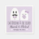 Diese blassfarbenen lila und schwarzen Halloween-Hochzeitsfeiern, Brautbäder oder Paare Duschbänke sind süß als sprichwörtlich! Feiern Sie Ihre nächsten Nuptials mit diesen niedlichen Paaren Hochzeitszettel mit einem niedlichen Bräutigam und Braut Geist mit den Worten "Trink essen und Beängstigend sein und Herzen darunter. Der Dapper Bräutigam trägt einen Schnurrbart und eine Bugblume, während seine schöne Braut ein passendes Lavendelband trägt, das ein Bouquet lila Blume hält. Personalisieren Sie es mit den Namen der Braut und Bräutigam und Veranstaltungsdatum. Artwork © Chrissy H. Studios, LLC. Alle Rechte vorbehalten.