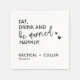 Schwarz und Weiß Minimalistisch "Essen, trinken und glücklich verheiratet sein!" Funny Personalisiert Cocktail Napkins für Hochzeitsbindungsparty | White Wedding Napkins mit Namen und Datum Sie können auch die Farbe von Text und Hintergrund ändern.