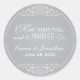 Runde Hochzeitsmonogramm Greifsticker mit dem Thema "Essen, Trinken und Verheiratet sein" in Silber / Grau und Weiß. Personalisieren Sie mit den Braut- und Bräutigamen und dem Hochzeitstag.