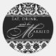 Iss, trinke, und sei verheirateter Aufkleber, mit einem eleganten Damast gemustert. Ideal für Gastgeschenke Hochzeiten und Süßspeisen am Buffet! Achten Sie darauf, dass Sie in meinem Shop Karo für die Koordination von Designs und anderen Farboptionen!