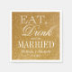 Essen Sie trinken und verheirateten Gold Glitzer und Weißpapier Hochzeitsnapkins. Elegantes Skripttypografie-Design für klassische Hochzeitsfeier. Stilvolle handgeschriebene Kalligraphie kombiniert mit schicken formalen Schriftart. Trendy Vorlage mit anpassbaren Hintergrundfarben. Niedlicher Vintager Slogan für rustikal Country chic Abendtisch. Auch für luxuriöse Probe-Dinner geeignet. Personalisiert mit dem Namen der Braut und des Bräutigams plus dem Datum der Ehe. Schöner Schimmer und glänzende Glanz Hochzeitsdekor. Shiny Imitate goldfarbene funkelnd Glitzern und glitzernde Glanzlichter. Luxuriöser Stil.