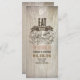 Essen Sie etwas trinken und verheiratete rustikale Hochzeitsprogramme mit kühnen Wirbel Typografie und Holztextur Hintergrund.