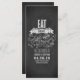 Essen Sie trinken und verheiratete Chalkboard-Hochzeitsprogramme mit kühnen Wirbel Typografie.