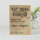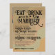 Diese Hochzeitseinladung ist sowohl modern als auch Retro. Es zeichnet sich durch ein lustiges Wort-Art-typografisches Design aus, mit extravaganten Blockschriften mit Bordüren und Swashes, die "Drink essen und Verheiratet sein!" lesen. Der Hintergrund ist ein hübscher Erdton, der in den Tönen Mocha, Taupe, Bräune und Salbei wirbelt. Die Rückseite hat Platz für Ihr Foto sowie einen QR-Code, damit Ihre Gäste Ihre Website für Details und UAWG leicht finden können. Ein schöner Weg, um Ihre Freunde und Familie einzuladen, um an Ihrem besonderen Tag an Ihrer Freude teilzunehmen!