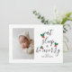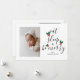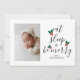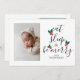 Niedliche Weihnachts-Baby-Fotoschablone mit lustigen Texten in modernem, elegantem Kalligraphieskript, das "essen, schlafen und fröhlich sein" sagt. Zwischen dem Text, der wie ein Weihnachtsbaum aussieht, ist eine Aquarellabbilderung eines roten und grünen Heiligen zu sehen! Fügen Sie Ihr schläfriges Familien-/Babybild hinzu! Sie können ein Bild auf der Rückseite zusammen mit Ihrer benutzerdefinierten Nachricht hinzufügen. Perfekt für Weihnachten, aber auch für Babyduschen und Geburtshinweise rund um die Feiertagssaison!