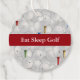 Set von 12 runden Gunst-Tags mit einem Bild von weißen Golfbälle und roten, gelben, blauen und grünen T-Shirts. Optionales rotes Band hat den optionalen Satz "Sleep Golf essen". Die Rückseite hat das gleiche Bild wie die Vorderseite und einen weißen transparenten Kreis mit anpassbarem Text. Sehen Sie sich die gesamte Sammlung des Vatertags-Geschenktages und des Geschenktages in der Rubrik GASTGESCHENKE an.