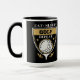 Diese Tasse ist mit einem Logo in Blassgold und Weiß versehen. Das Bild zeigt einen Golfball auf einem Abschlag, und der Text sagt "EAT SLEEP GOLF REPEAT". Das Bild wird zweimal wiederholt, und Ihr Name befindet sich im unteren Bereich in hellgoldenem Gold.