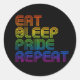 Essen Sleep Pride Wiederholung T - Shirt Runder Aufkleber