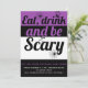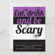 Essen, trinken und beängstigendes lila Halloween-P Einladung