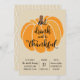 Feiern Sie Ihren Erntedank Tag mit unserer modernen Erntedank Dinner Party Einladung "essen, trinken & danken". Unsere stilvolle und trendige Einladung bietet einen großen gemusterten Kürbis mit Kalligraphie-Skript. Dreh die Einladung nach oben, um einen passenden Musterhintergrund für eine besondere Touch zu finden.