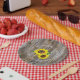 Essen, trinken und Verheiratet sein Holz und Sonne Pappteller