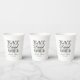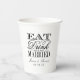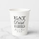 Diese Papiertassen sind perfekt für alle, die dieses Jahr eine Hochzeit oder ein Probe-Dinner haben. Das Design bietet Typografie "eat, drink & be verheiratet" Skript auf einem frischen, weißen Hintergrund und einfach zu personalisieren Template-Formulierung. Matching-Elemente finden Sie in der Auflistung.