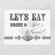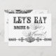 Elegante und unterhaltsame Schriftart verkünden die Nachricht: "Lasst uns essen, trinken und verheiratet werden!" auf einer reizvollen Bridal Shower Einladung Postkarte. In einer sauberen, knusprigen, schwarz-weißen Farbpalette ist es das Beste von Vintag mit einer modernen Drehung. Fügen Sie einfach Ihre Bridal Dusche Einladung auf der Rückseite hinzu.