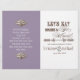 Eine schöne, lustige und preiswerte Möglichkeit für Hochzeitsfeiern. Diese werden flach an Sie verschickt und Sie müssen sie in 1/2 oder die meisten lokalen Druckereien werden dies für Sie gegen eine Gebühr tun. Elegante und unterhaltsame Schriftart verkünden die Nachricht: "Lasst uns essen, trinken und verheiratet werden!" auf einem wunderschönen whimsical Wedding Invitation Ensemble. In einer sauberen, knusprigen, lavendelfarbenen, schokoladenbraunen und weißen Farbpalette ist es das Beste von Vintag mit einer modernen Drehung. Das Hochzeitsprogramm hat den Text und Ihre Namen mit Ihrem Hochzeitsdatum sowie Ihr Lieblingsangebot, Ihre Schrift oder? auf der Rückseite. Das Interieur ist für Sie Set, um sich anzupassen. Wenn Sie Hilfe benötigen, gibt es eine geringe Gebühr für den Service, senden Sie uns einfach eine E-Mail. Es gibt eine komplette Produktpalette mit diesem Design und wir können es in jeder beliebigen Farbkombination(en), die Sie wünschen, tun.