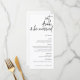 Dieses Hochzeitsmenü bietet einen wunderschönen Script-Schriftart, der die Wörter "essen, trinken und verheiratet sein" zeigt, um Ihren Gästen ein elegantes Hochzeitsmenü zu bieten.