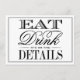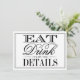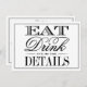 Essen, trinken & Verheiratet sein Moderne Schwarz & Weiß Hochzeitsdetails Karten. ÜBERPRÜFEN SIE DIE ENTSPRECHENDEN ELEMENTE FÜR DIESE ERHEBUNG