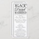 Essen, trinken & Verheiratet sein Moderne Schwarz/Weiß Hochzeitsprogramme Vorlagen. ÜBERPRÜFEN SIE DIE ENTSPRECHENDEN ELEMENTE FÜR DIESE ERHEBUNG