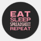 Essensschlafspreadsheet Wiederholung der klassisch Runder Aufkleber