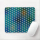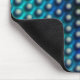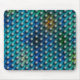 Estampado de azul real variando para verde e azul mais claro com imagens que parecem esferas ou bolinhas, dependendo de como olhar, ou pode parecer com furos redondos, dependendo da posição do objeto e percepção pessoal.
